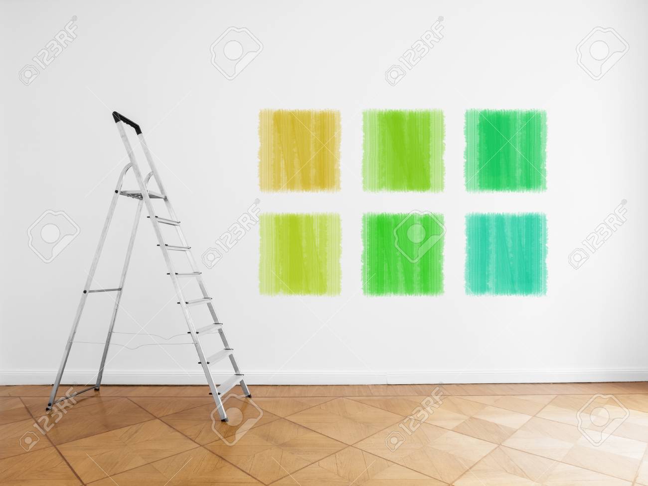 Room With Ladder And Colored Paint Samples On Wall